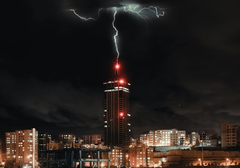 Implementação de sistemas de proteção contra raios para minimizar riscos elétricos e danos estruturais em edificações.